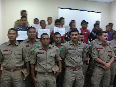 Encerramento do Projeto Bombeiro Mirim, onde os alunos Álisson do Nascimento Capistrano e Elivelton da Cunha Araújo ( 7º ano) receberam seus certificados.